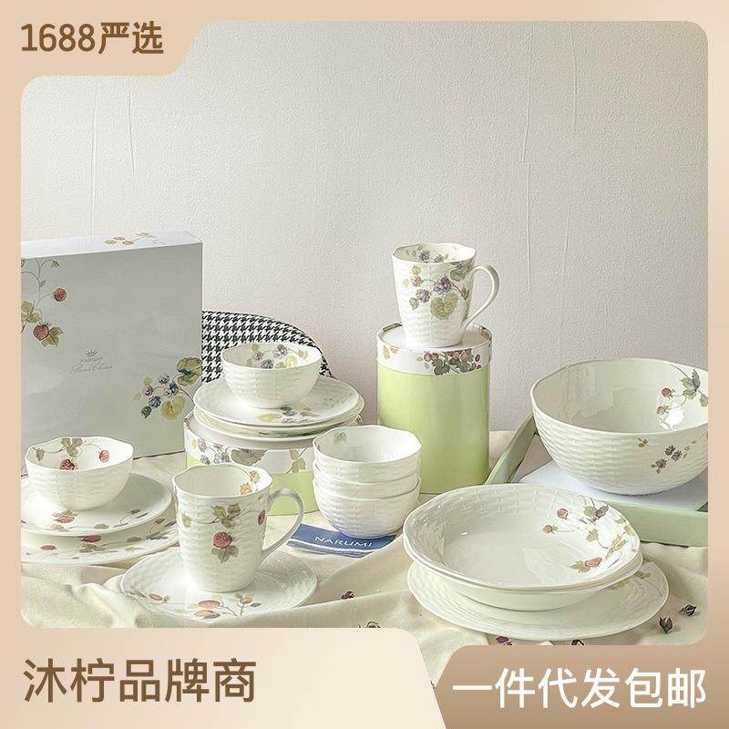 日式鸣海陶瓷餐具礼盒套装露西花园骨瓷碗盘子高颜值咖啡杯碟
