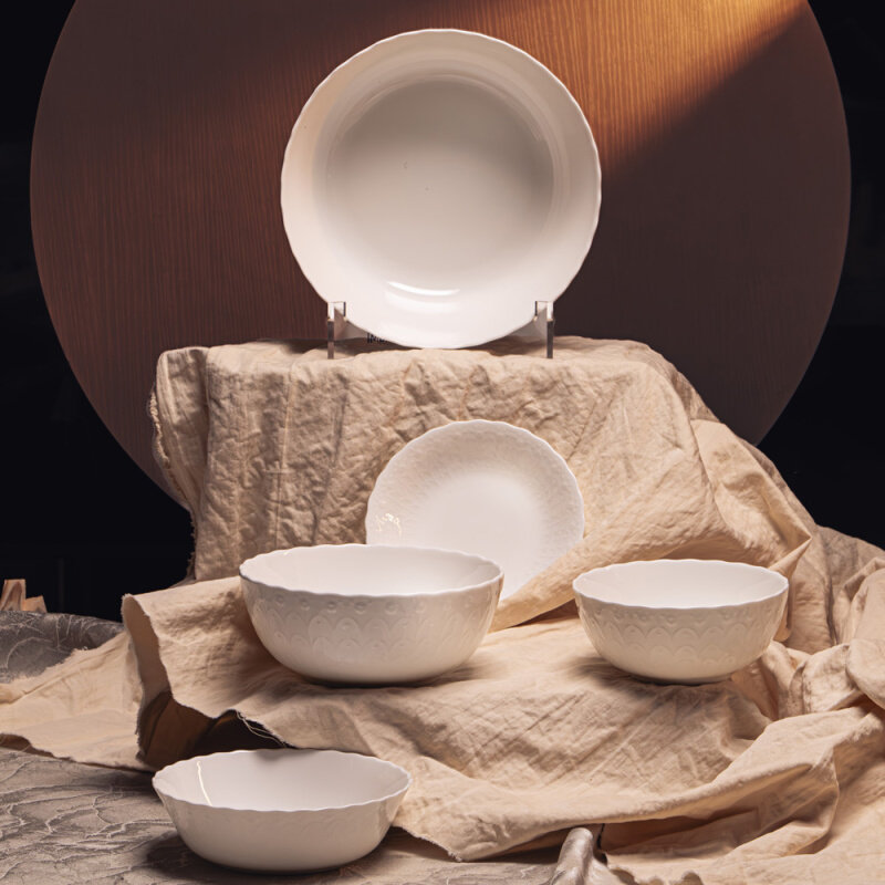 日本NARUMI鸣海Silky White系列4人份/8人份中餐组锅盘套骨瓷