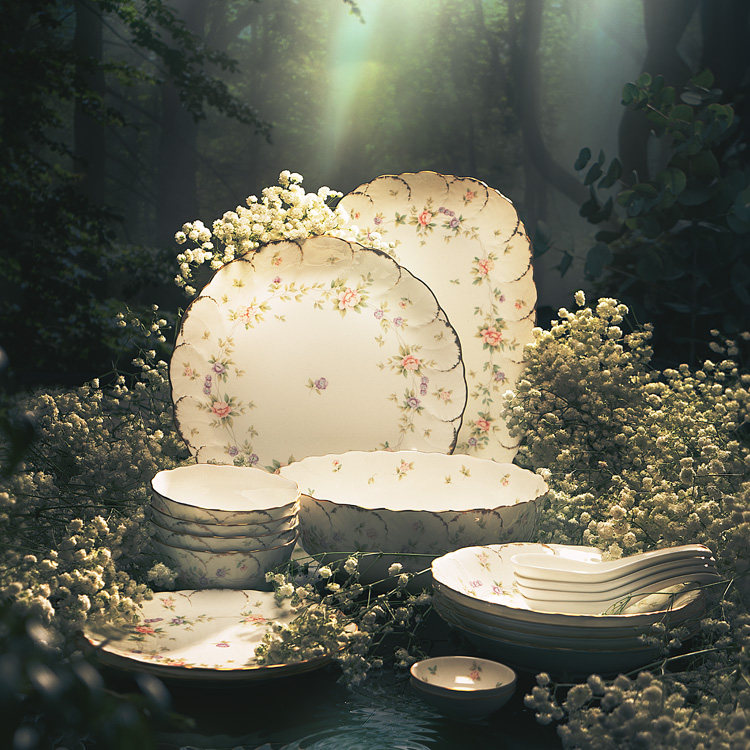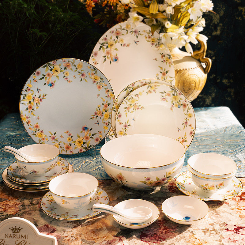日本NARUMI 鸣海Lucy's Garden系列 5人份中餐组(16头)骨瓷餐具