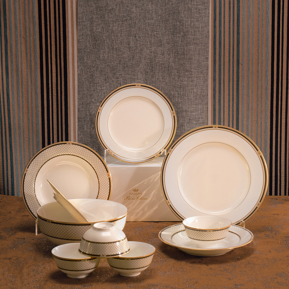 日本NARUMI/鸣海Mirei系列4人份中餐套装(14头)骨瓷餐具