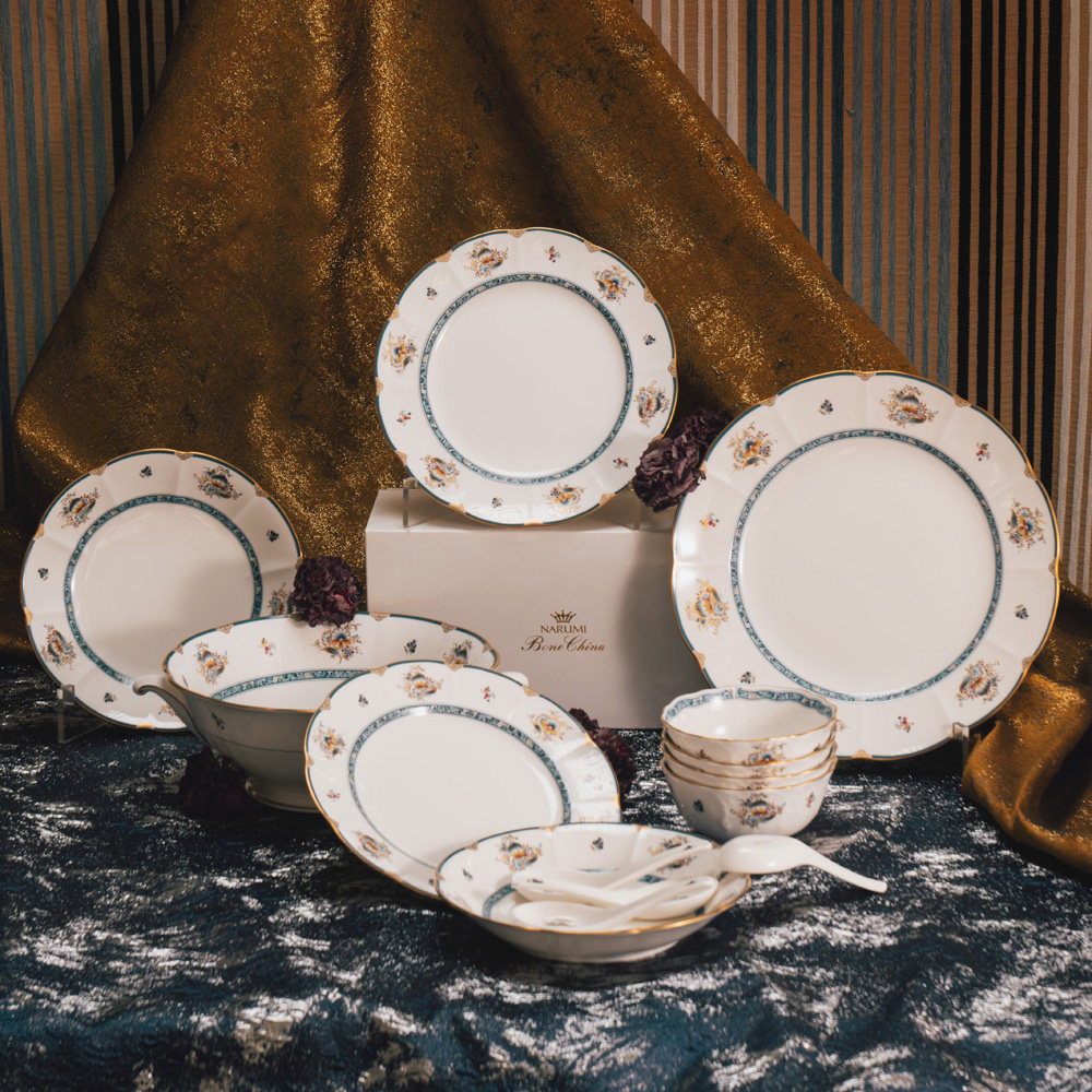 日本NARUMI/鸣海Remembrance系列 4人份中餐组合(18头)骨瓷釉中彩