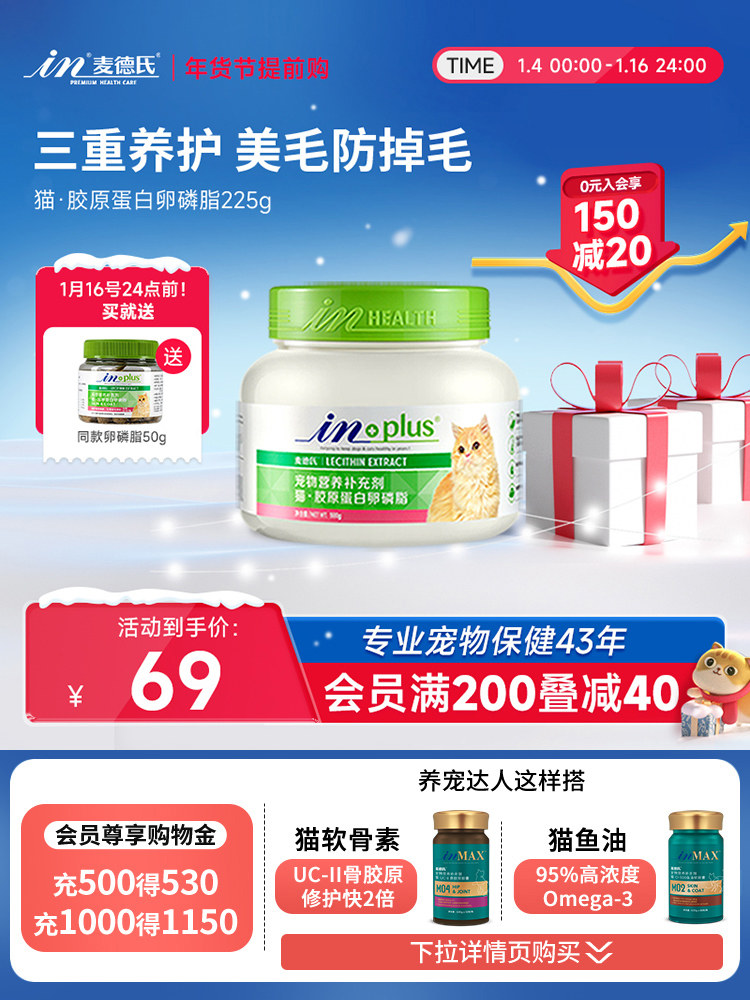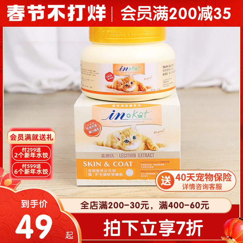 INKAT麦德氏卵磷脂猫护美毛防掉毛猫咪爆毛粉鱼油猫用猫猫软磷脂.