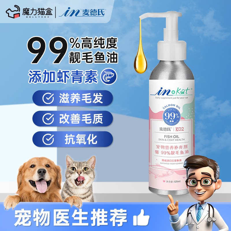 【柿子菌】麦德氏鱼油 猫用乳化鱼油防掉毛 美毛卵磷脂去腥更适口