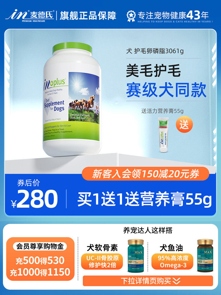 3061g麦德氏卵磷脂狗狗美毛超浓缩软磷脂犬用金毛麦德士美国in