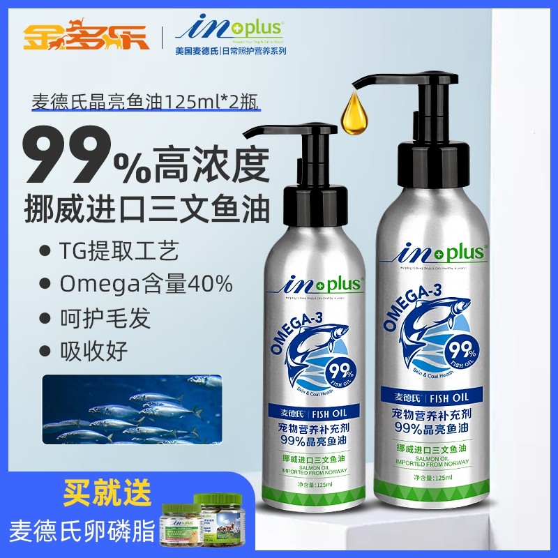 麦德氏鱼油猫咪用宠物防掉毛卵磷脂美护毛三文鱼油狗狗专用125ml