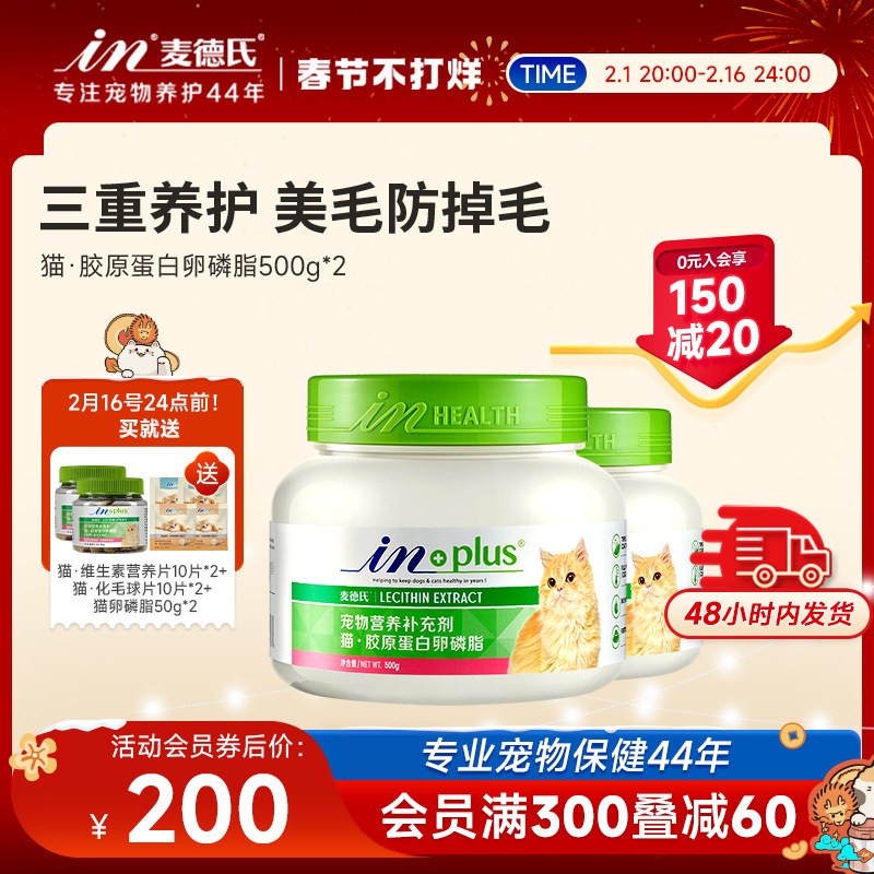 麦德氏超浓缩猫卵磷脂猫咪专用亮毛护毛软磷脂防落毛500g