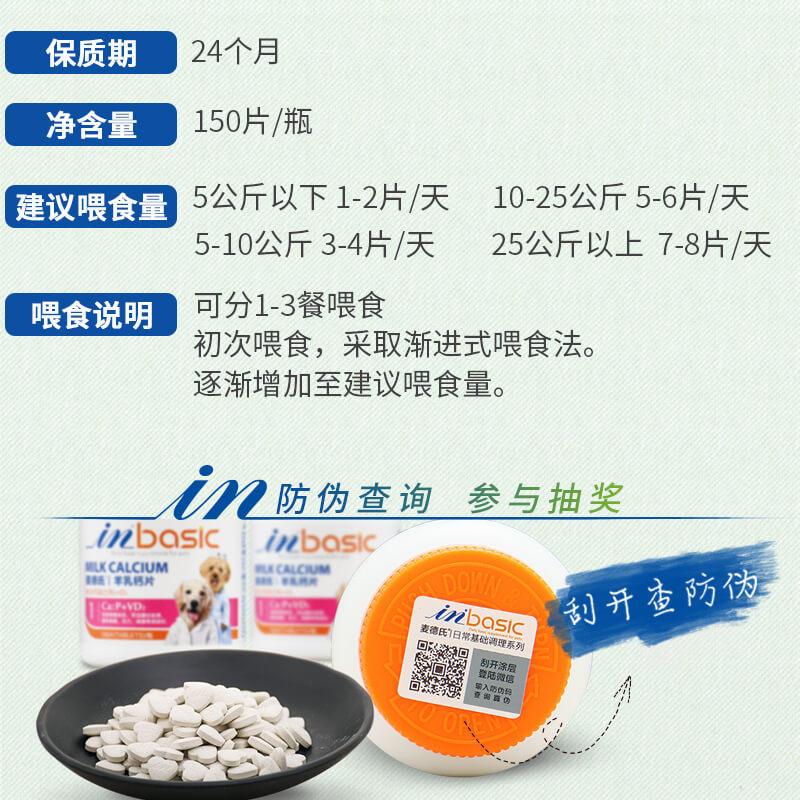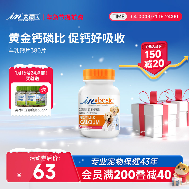 【2瓶46】美国In麦德氏狗狗钙片宠物乳钙片150片羊乳钙片泰迪金毛