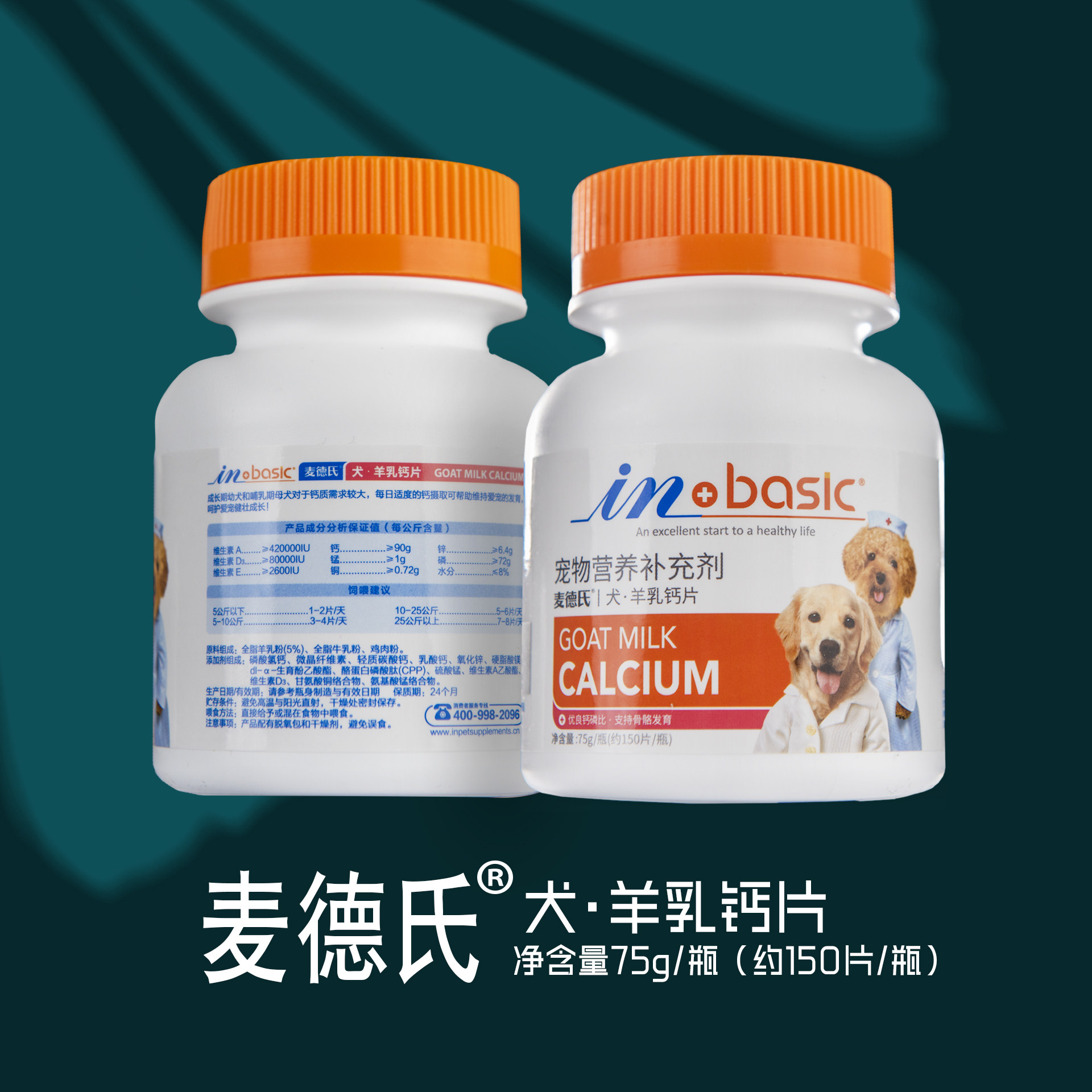 麦德氏inPlus狗狗羊乳钙片 泰迪补钙幼犬老年犬 双层片120片