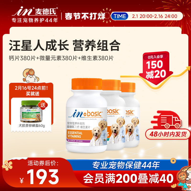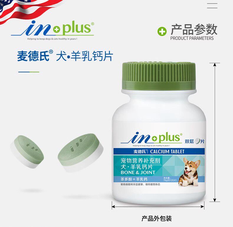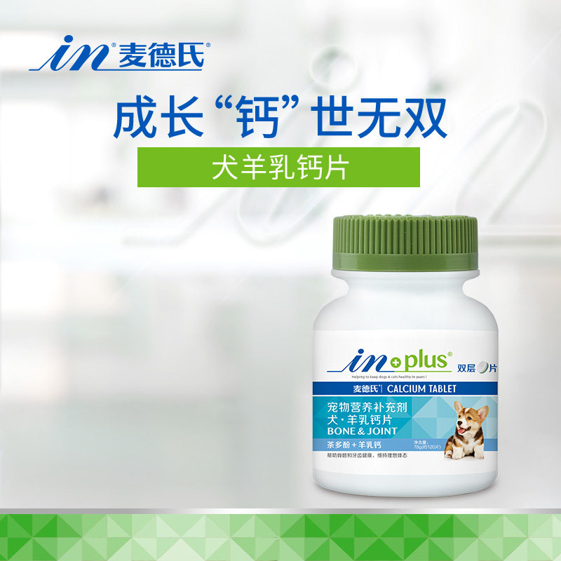 麦德氏IN-PLUS狗狗羊乳钙片双层片120片宠物微量元素片异食麦德氏
