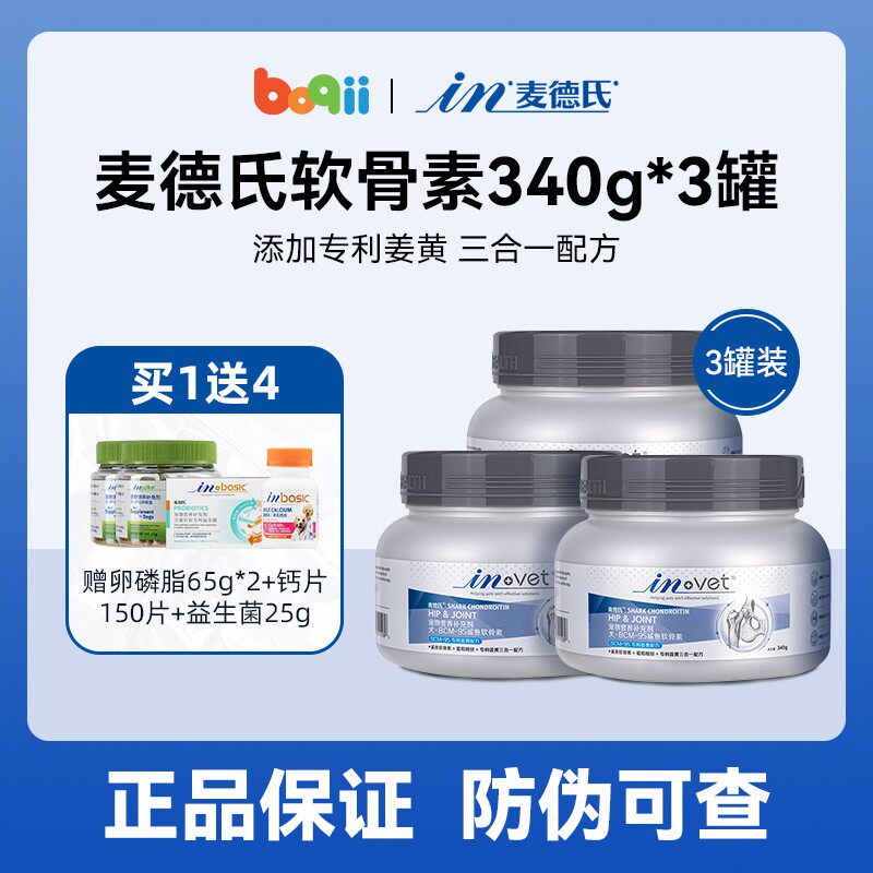 麦德氏鲨鱼软骨素3罐装粉狗狗犬钙片健骨补钙宠物专用呵护关节宝