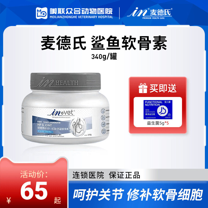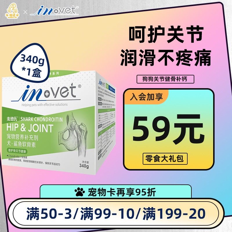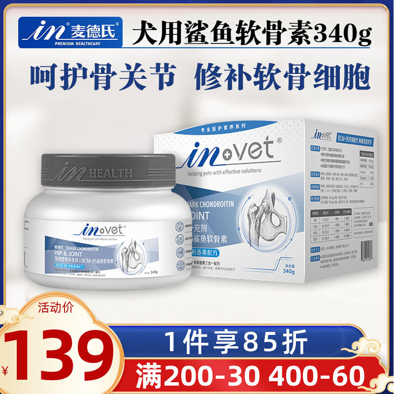 麦德氏INVET鲨鱼软骨素 关节保健修复狗狗钙片关节生 大瓶340G