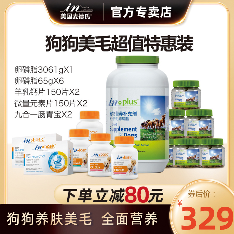 麦德氏套装卵磷脂3061g狗狗犬用软磷脂钙片健骨补钙益生菌