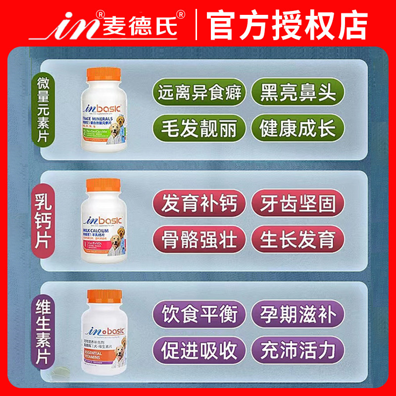 麦德氏狗狗钙片微量元素狗维生素组合装金毛泰迪犬异食癖宠物钙粉