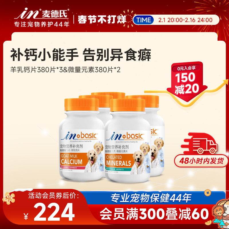 麦德氏狗狗钙片380片*3狗狗微量元素380片*2健骨补钙
