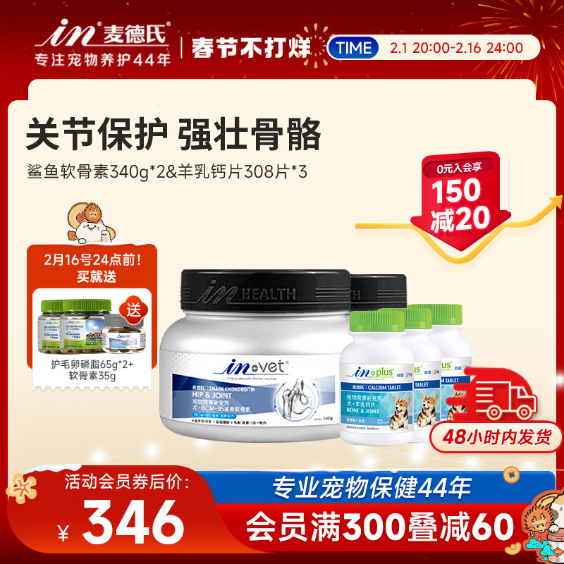 麦德氏鲨鱼软骨素狗340g*2 狗狗钙片308片*3健骨补钙