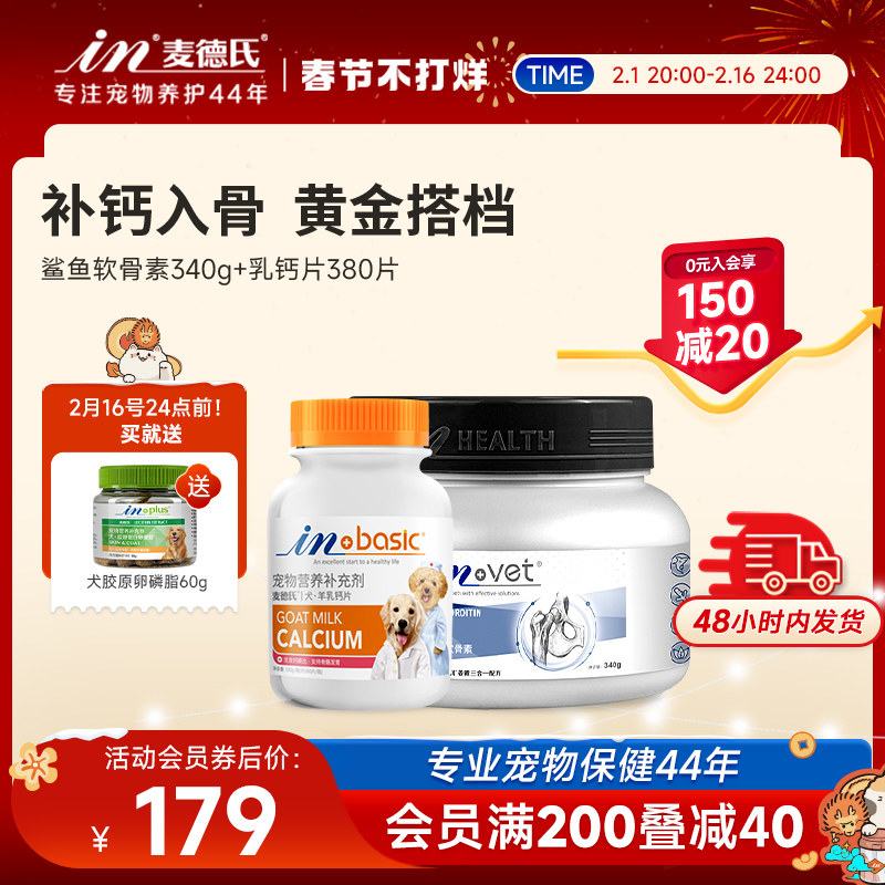 麦德氏鲨鱼软骨素狗狗钙片组合装泰迪金毛关节生宠物用钙粉软骨素