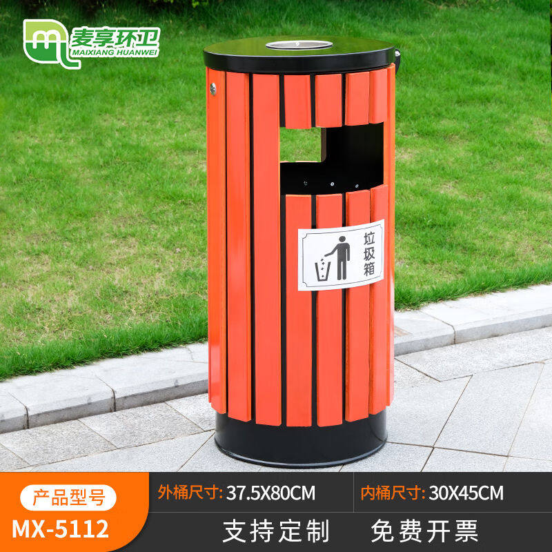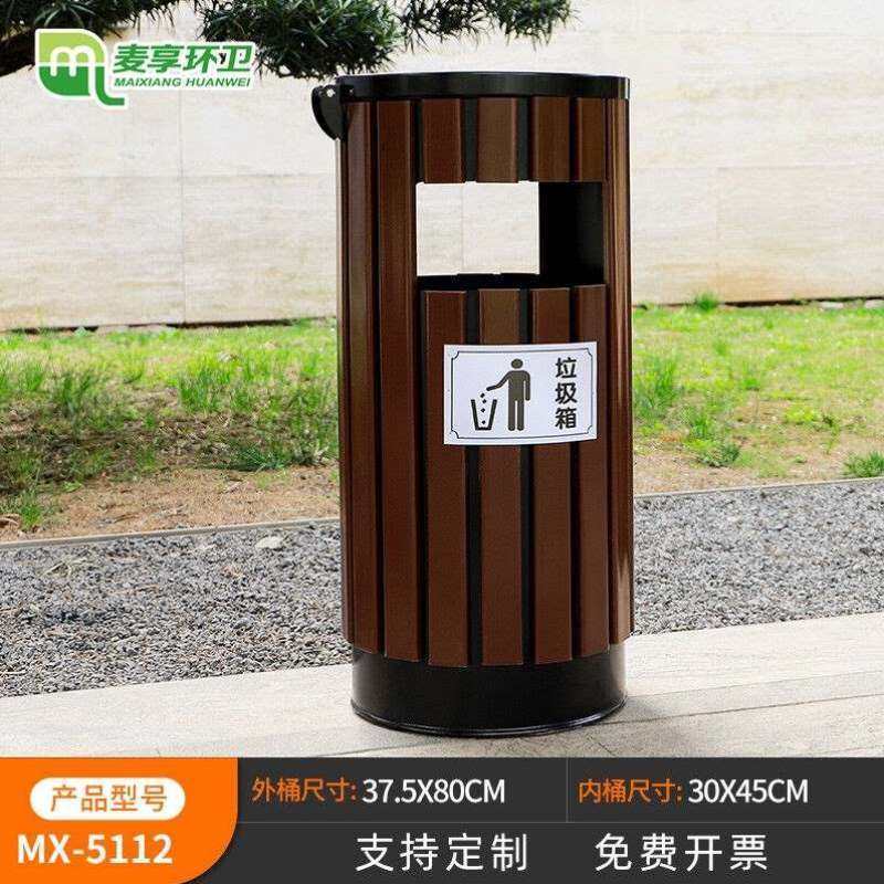 麦享环卫户外垃圾桶不锈钢新国标二分类环卫钢木果皮箱大号商用垃