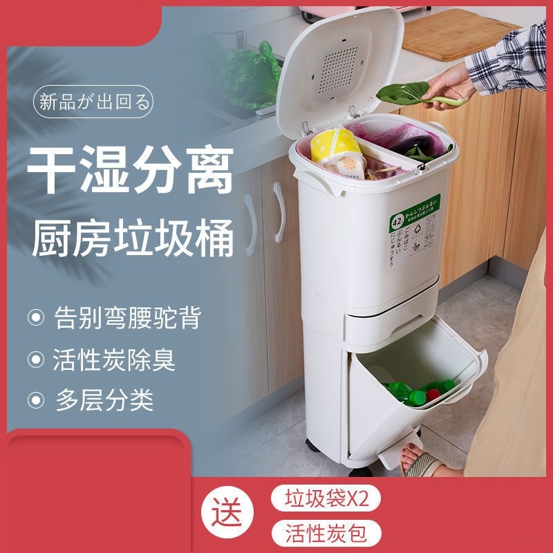 促品厨房垃圾桶分类防异味厨余干湿分离带盖加厚加大容量防臭日式