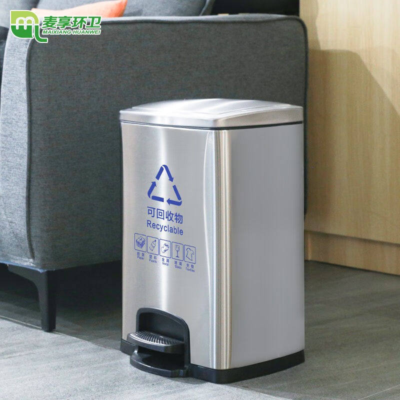 麦享环卫脚踏垃圾桶不锈钢带盖新国标分类干湿分离家用办公室厨房