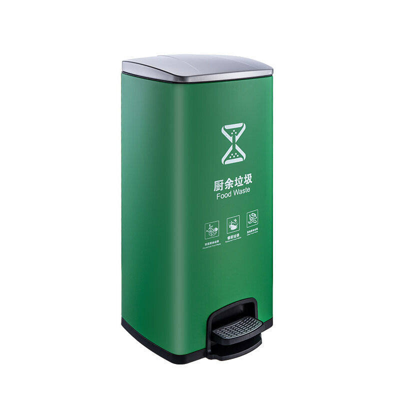 庄太太【30L绿色-厨余垃圾】商场酒店不锈钢分类脚踏垃圾桶ZTT-N0