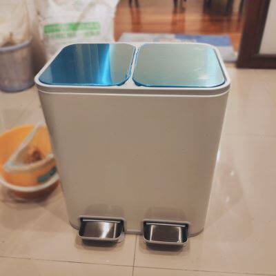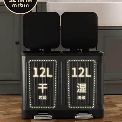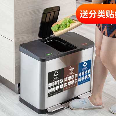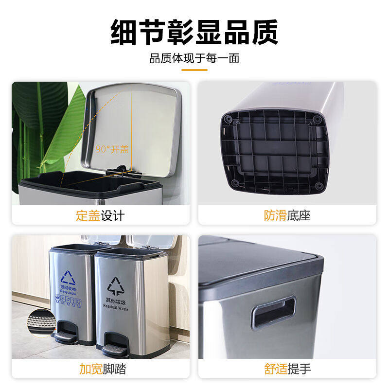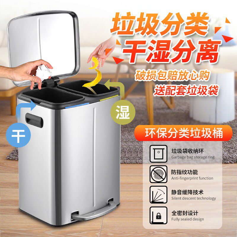 分类垃圾桶家用厨房干湿分离不锈钢脚踏商用带盖双桶大号静音走廊