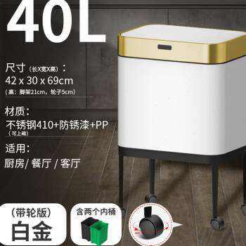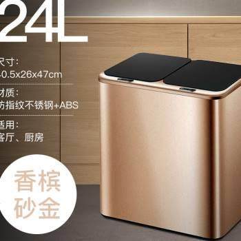 智能感应分类垃圾桶家用厨房不锈钢带盖大容量双层干湿分离商用筒