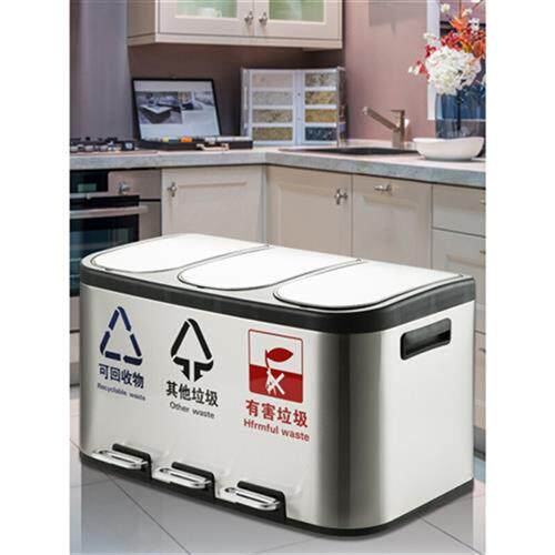 脚踏式不锈钢干湿分离二三分类垃圾桶家用厨房办公室小型商用翻盖