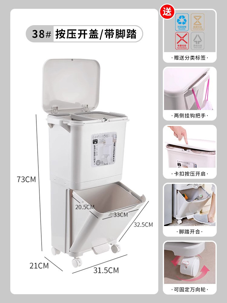定制栋哈厨房垃圾分类垃圾桶带盖家用大号厨房家庭双层干湿分离小