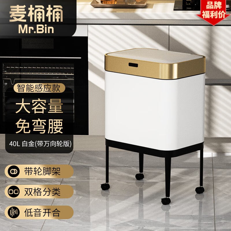 麦桶桶厨房专用垃圾桶轻奢感应智能家用高脚客厅分类大号【特惠】