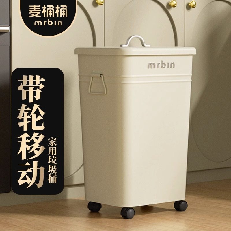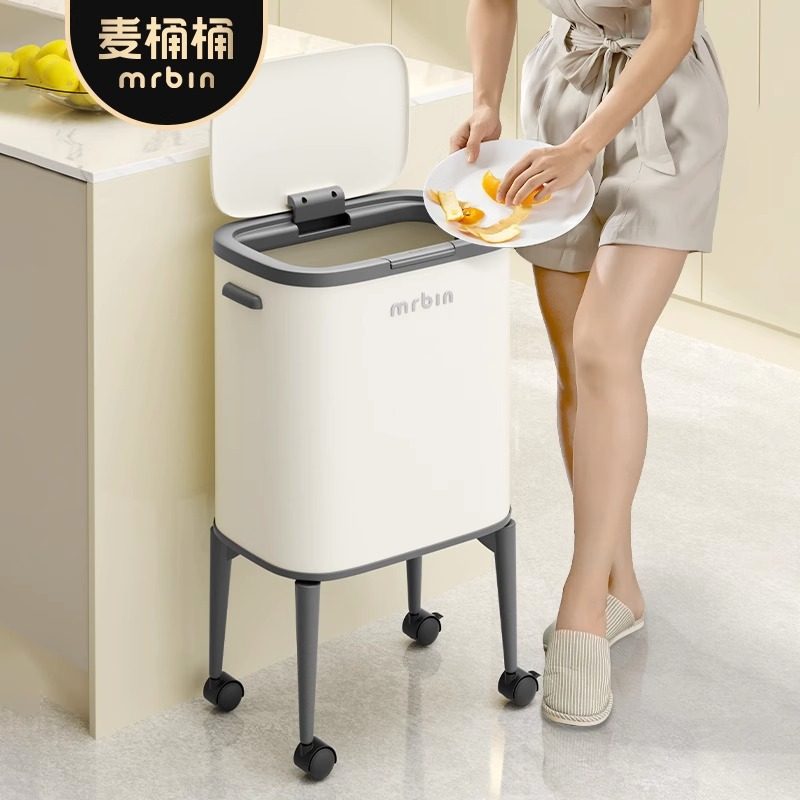 麦桶桶mrbin厨房垃圾桶移动带轮子家用客厅滑轮带盖超大号大容量