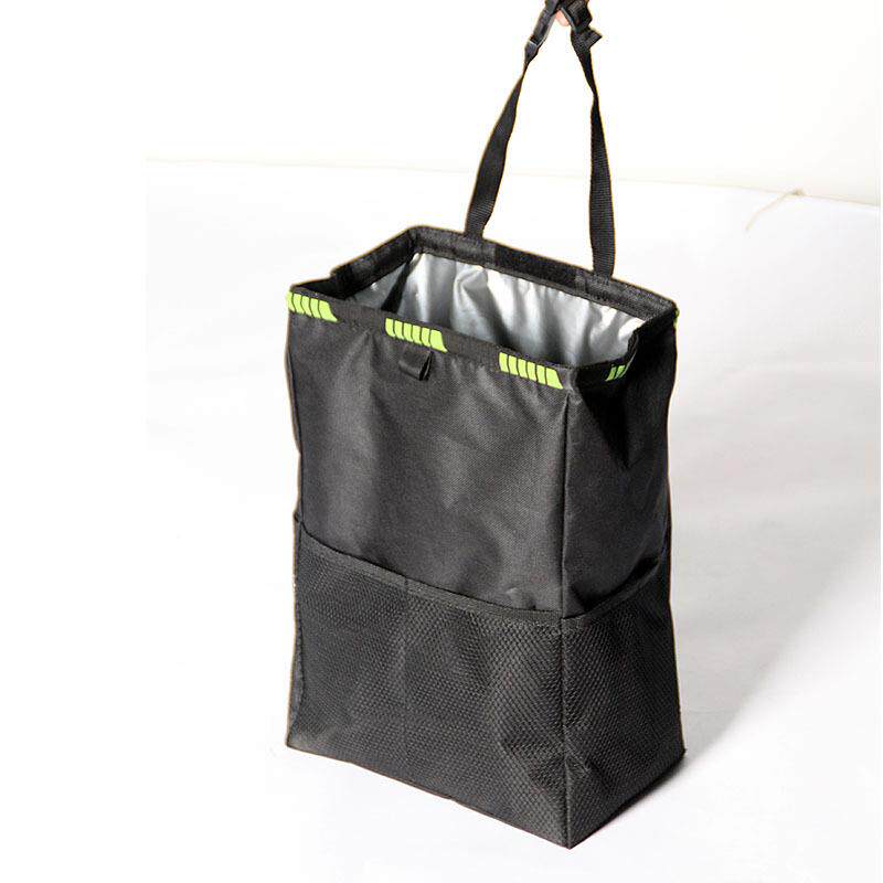 热销绿边车载垃圾桶挂式汽车椅背收纳袋多功能车载置物袋防水