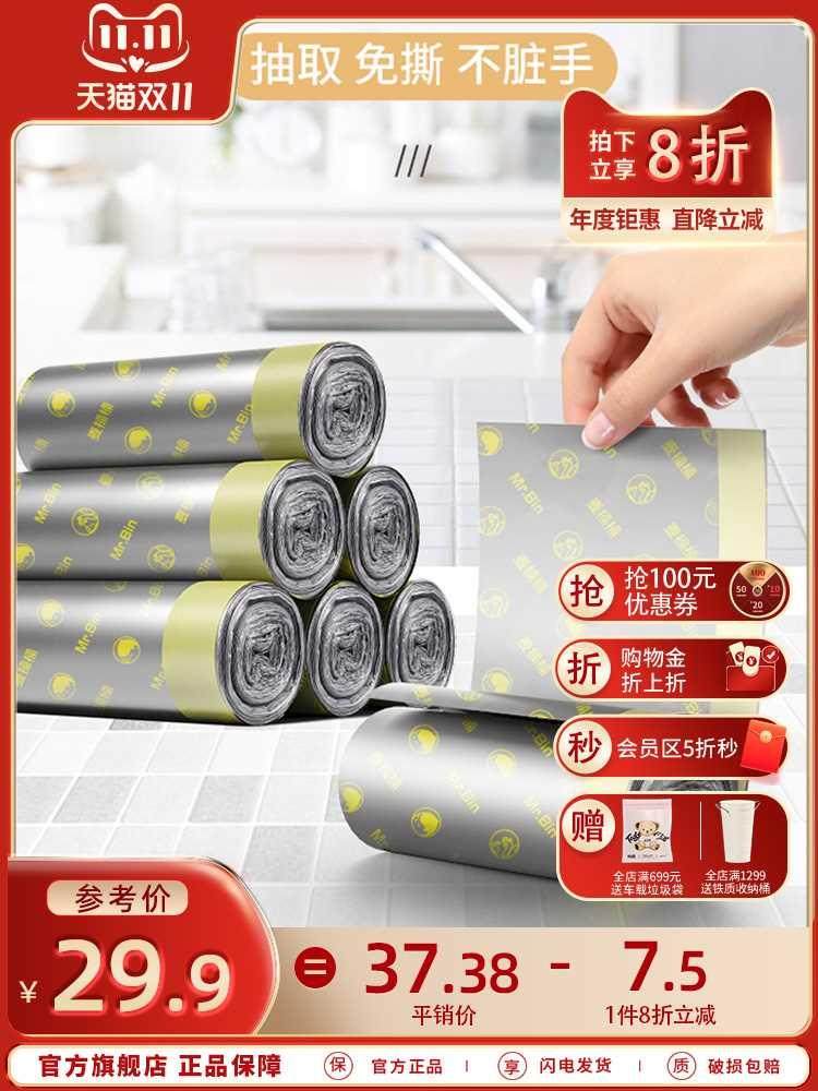 麦桶桶mrbin抽绳自动收口大号垃圾袋家用手提式收纳神器加厚黑色
