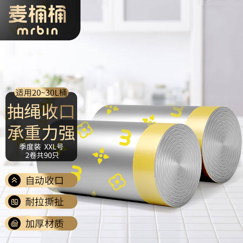麦桶桶(Mr.Bin)大垃圾袋加厚手提抽绳塑料袋家用厨房自动收口收
