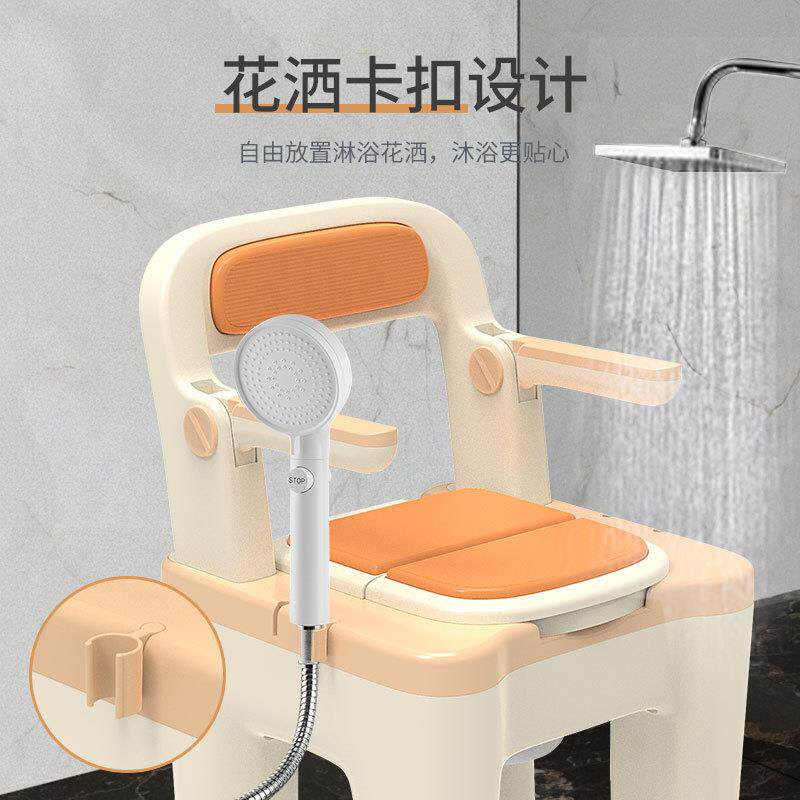 加厚老年人坐便椅带桶靠背折叠浴室残疾人座厕移动马桶扶手椅子