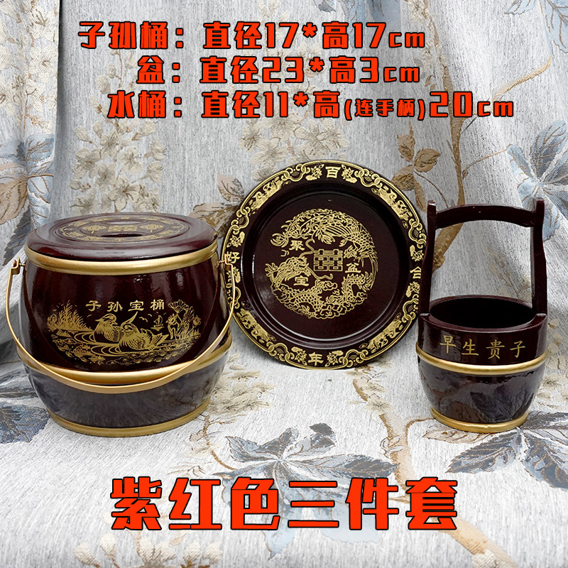 结婚喜庆用品大红实木马桶三件套摆件称心如意子孙桶风俗陪嫁福桶