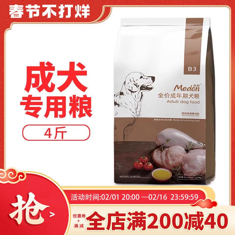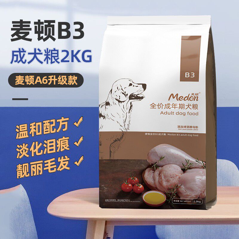 麦顿A6升级款B3金毛哈士奇贵宾比熊泰大中小型犬狗粮2kg 麦顿狗粮