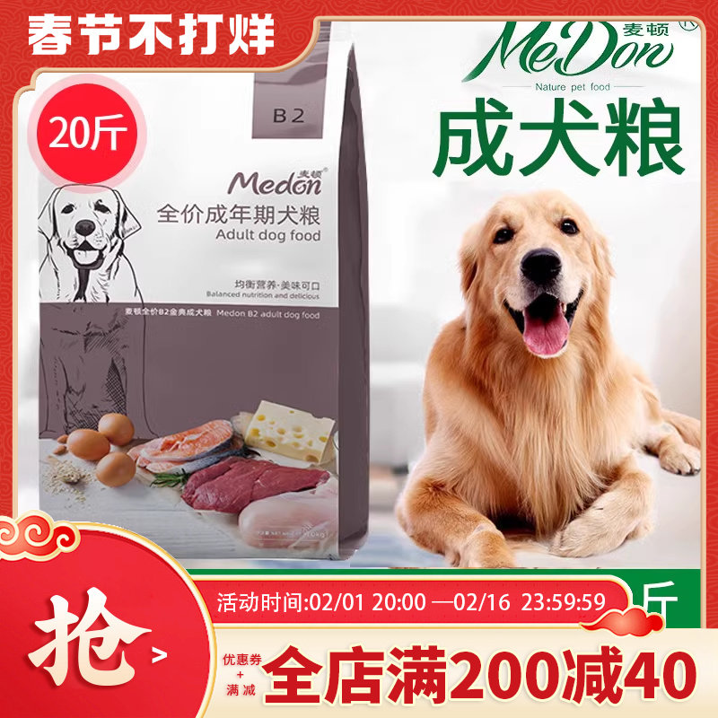 麦顿金典B2狗食成犬10kg20斤装金毛萨摩N耶拉布拉多中大型犬狗食