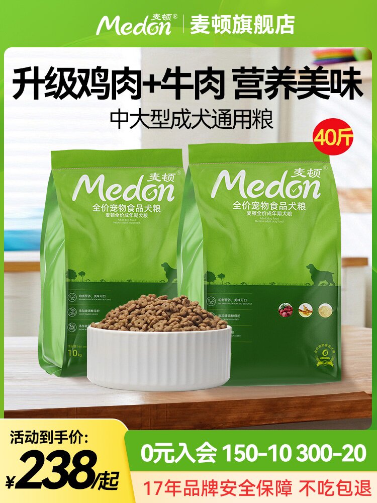 麦顿狗粮40斤装通用型金毛拉布拉多中大型犬专用粮旗舰店官方正品