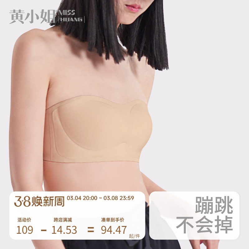 黄小姐无肩带内衣无痕防滑抹胸薄款夏季内衣文胸防走光无钢圈胸罩