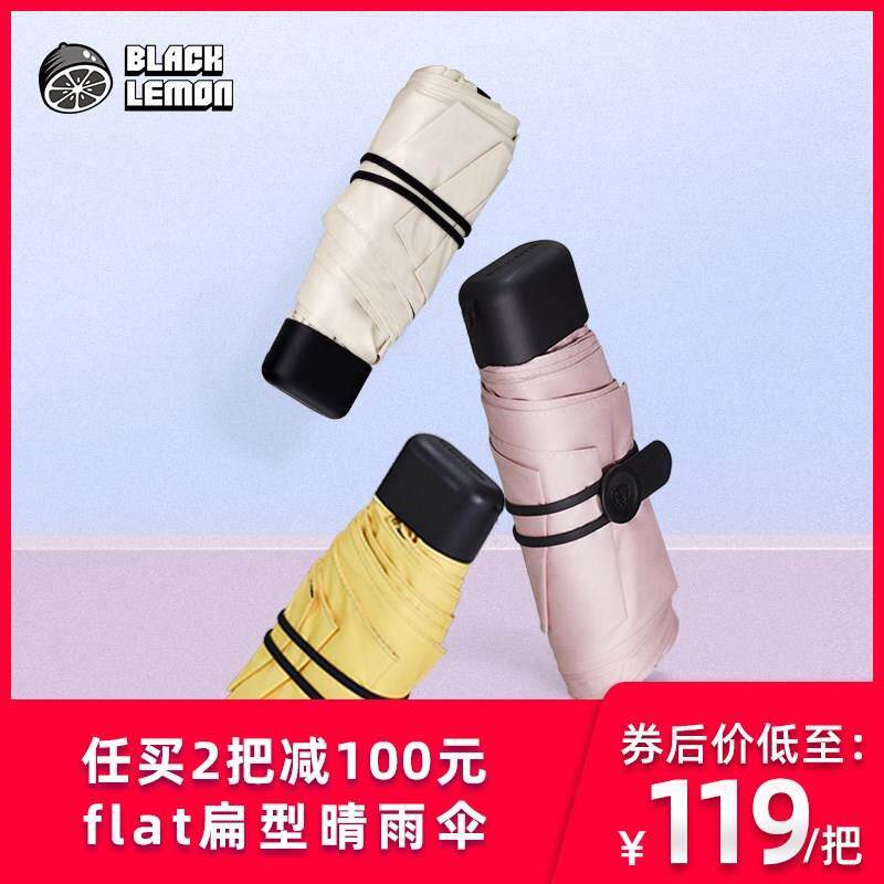 黑柠檬晴雨伞小巧便携遮阳伞太阳伞女防晒防紫外线黑胶雨伞五折伞
