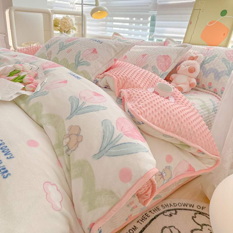 牛奶绒豆豆绒床盖四件套加厚冬季榻榻米被套2023新款家用学生宿舍