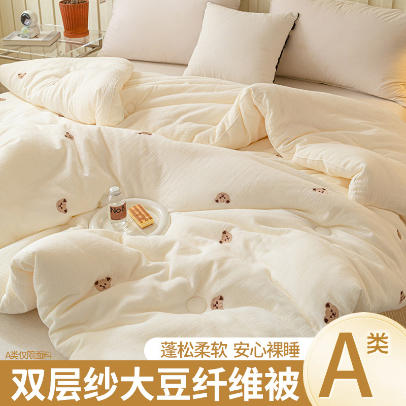 双层纱大豆纤维被子加厚保暖冬被春秋棉被单双人四季通用夏凉被芯