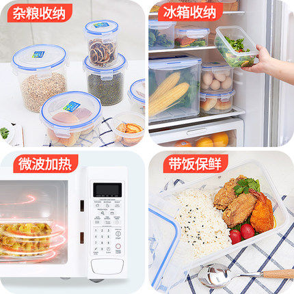 龙士达冰箱收纳盒塑料圆形长方形保鲜盒带盖密封盒食品微波炉套装