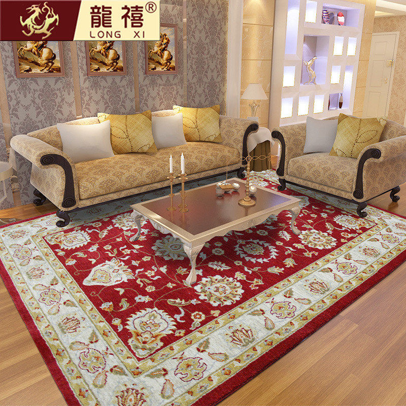 龙禧新西兰纯羊毛客厅茶几卧室床边水洗加柔大地毯中式日式雕花款
