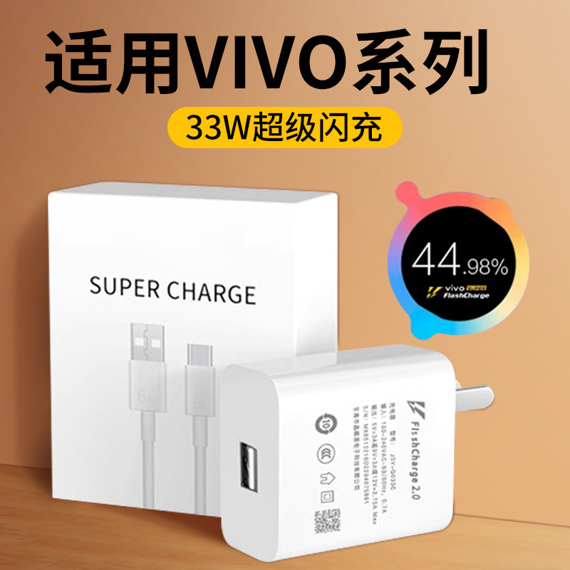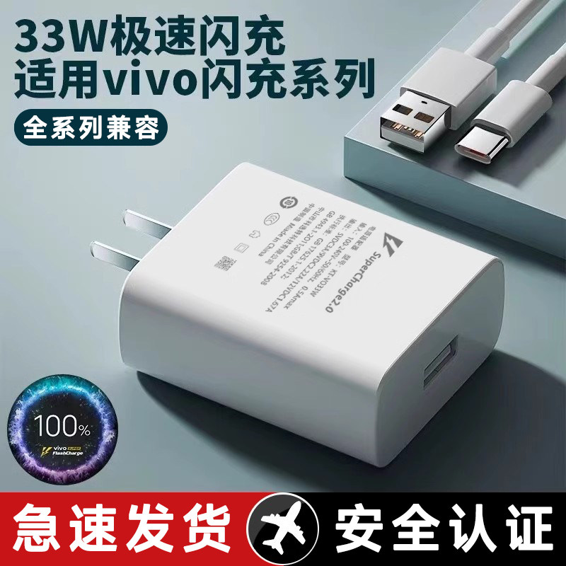 适用于VIVO33W充电器超级闪充x30pro x50pro x60Pro手机充电插头快充s7 s7e s9pro双引擎闪数据线加长3A套装