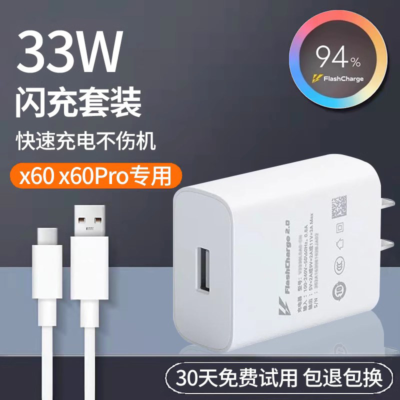 适用vivoX60充电器头手机33W瓦x60pro闪充数据线x60充电线Z1x插头快充5G双引擎手游套装x60pro+充电器
