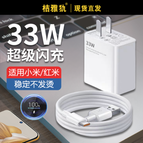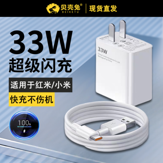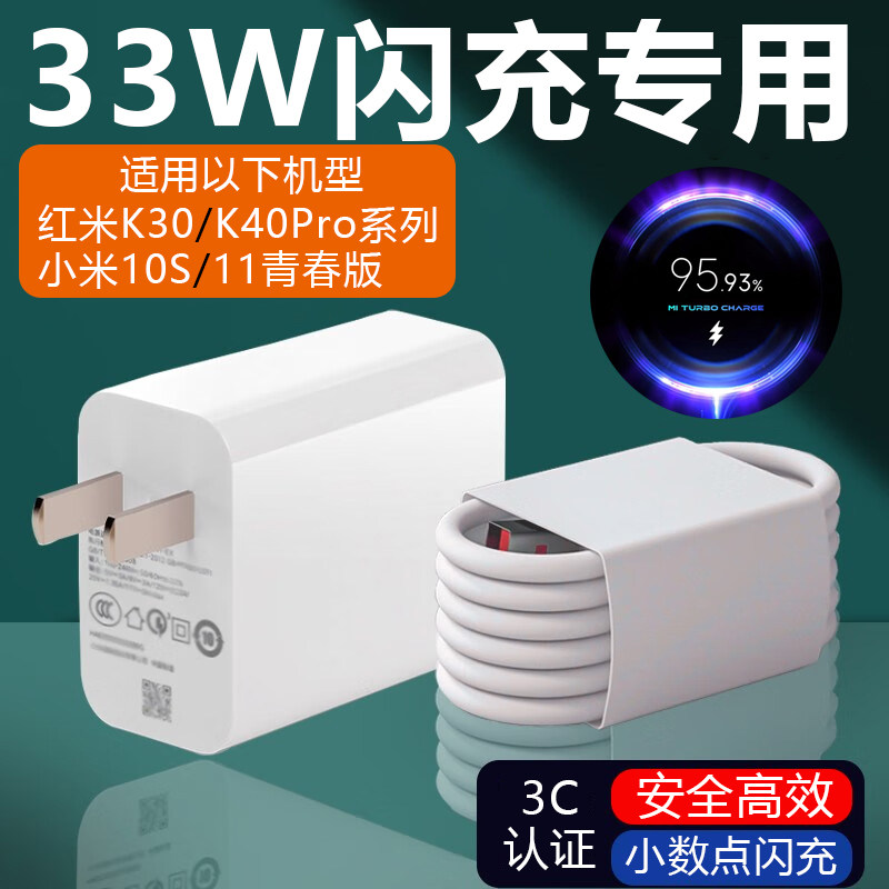 33W超级闪充充电器头适用于红米小米11/10s不伤机note9平板K20k30k40手机快充青春版8套装插头6Aa数据线typec