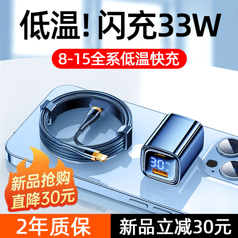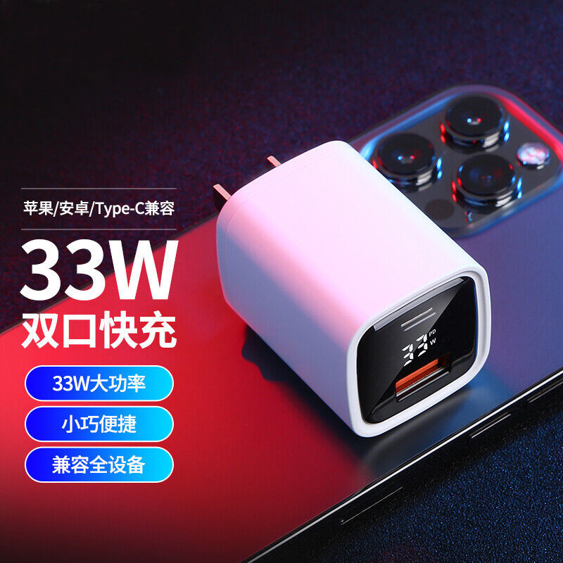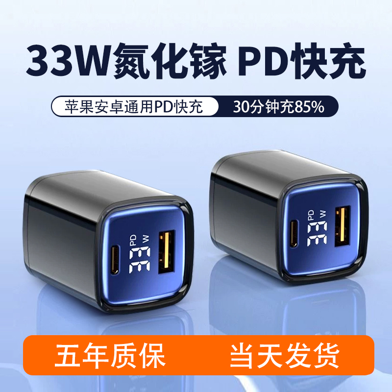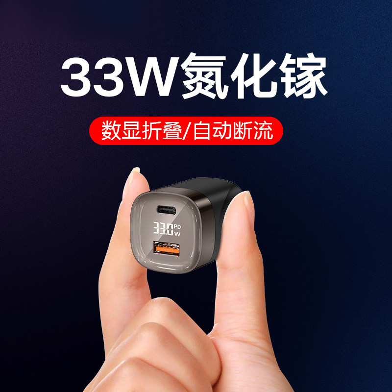 数显氮化镓33w充电器头超级GaN快充头pd30W适用苹果15Pro充电头14plus插头iPhone13max手机平板20W双口数据线