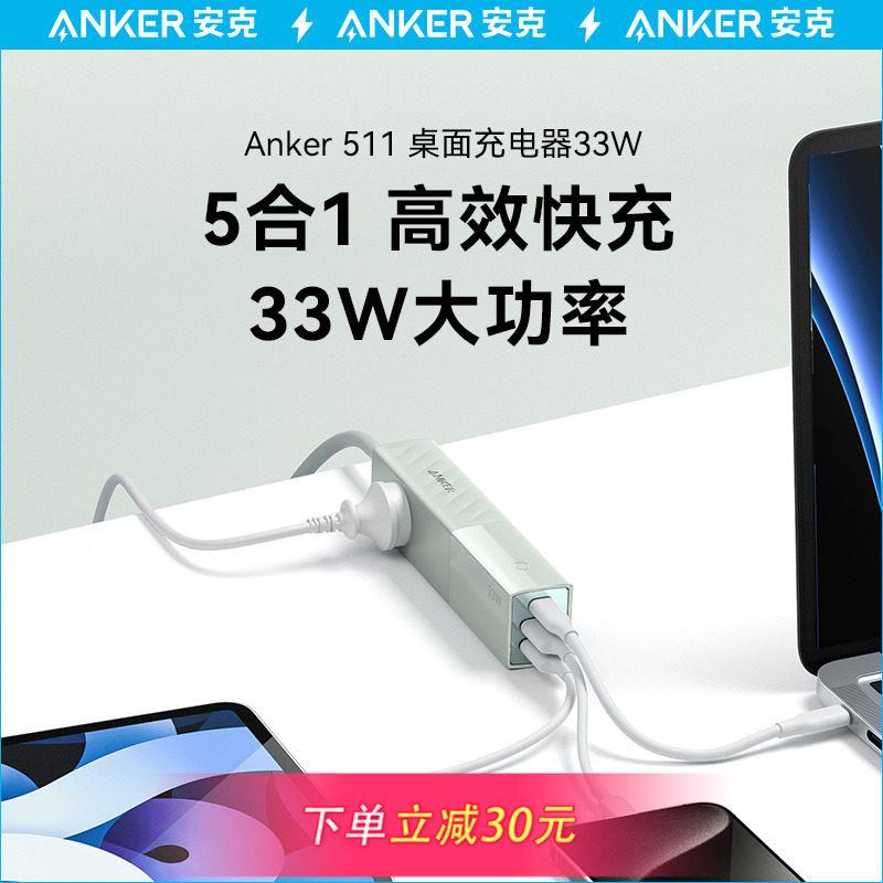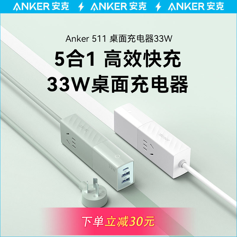 Anker安克33W接线板桌面充电器多口插座多功能USB插线板多孔排插
