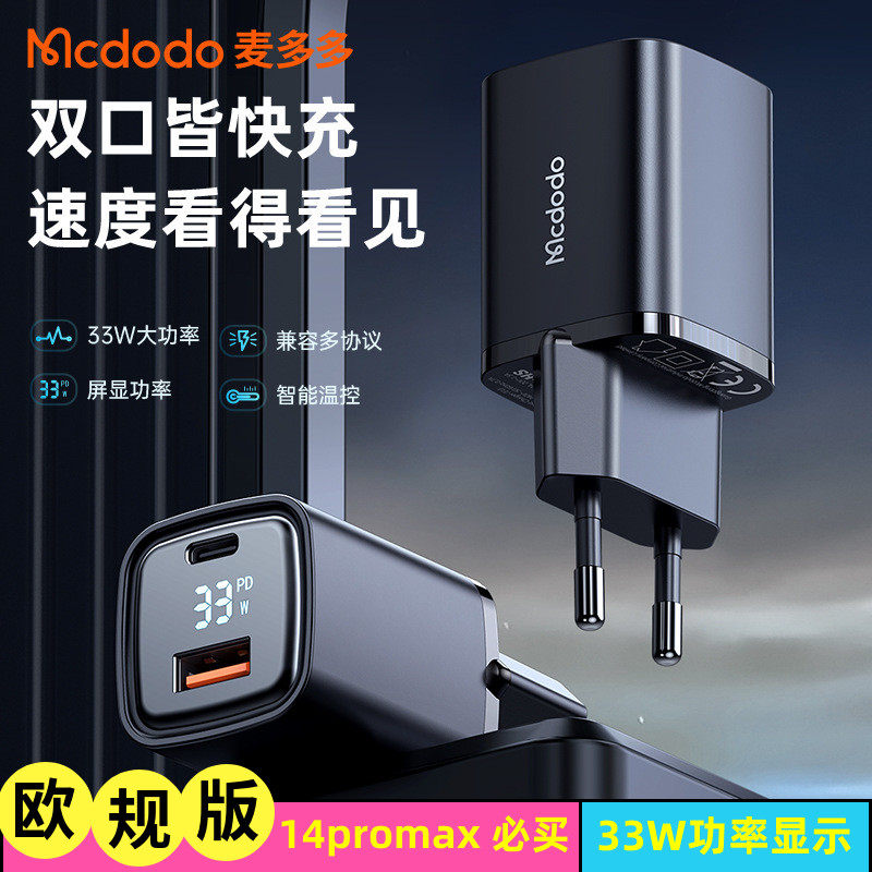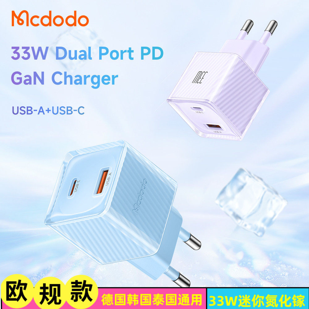 麦多多欧规33W氮化镓欧标法国韩国泰国充电头适用于苹果14plus/13pro/12手机快充平板typec插头pd+USB充电器